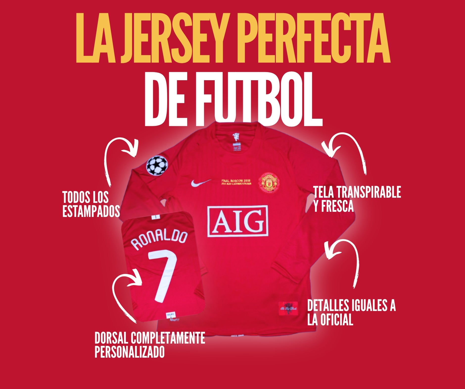 Manchester United 2008 Manga Larga Ronaldo 2008 - | Bart Jerseys